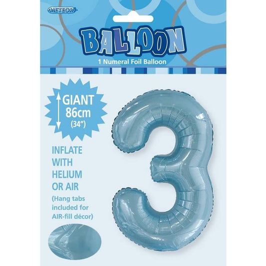 Powder Blue Number 3 Giant Numeral Foil Balloon 86CM (34")
