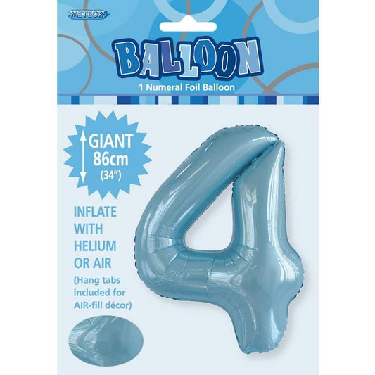 Powder Blue Number 4 Giant Numeral Foil Balloon 86CM (34")