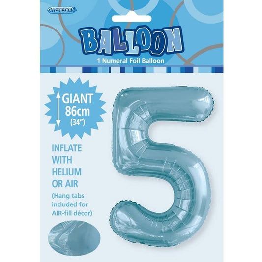 Powder Blue Number 5 Giant Numeral Foil Balloon 86CM (34")