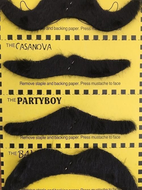 Black Fake Moustaches Set 10pcs 1970's Disco Fever