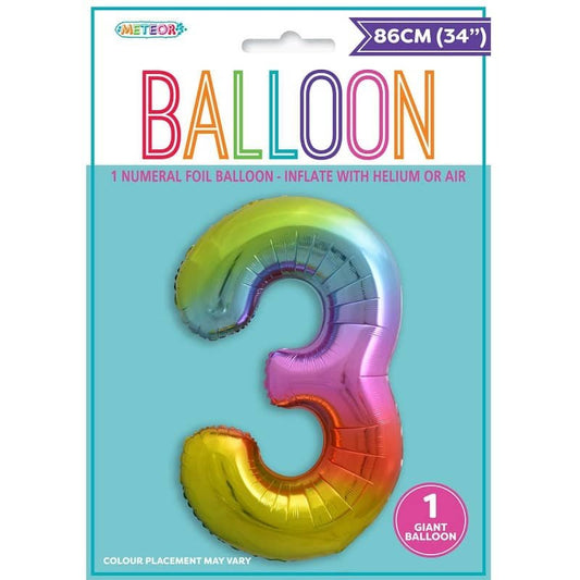 Rainbow Number 3 Giant Numeral Foil Balloon 86CM (34")