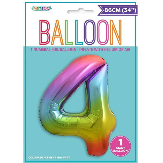 Rainbow Number 4 Giant Numeral Foil Balloon 86CM (34")