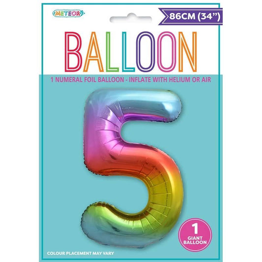Rainbow Number 5 Giant Numeral Foil Balloon 86CM (34")
