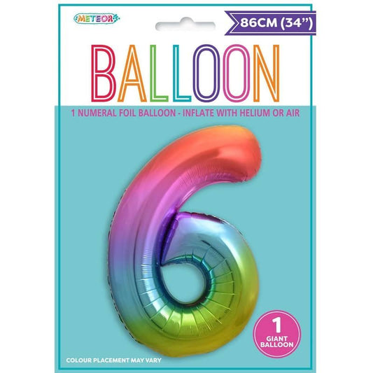 Rainbow Number 6 Giant Numeral Foil Balloon 86CM (34")