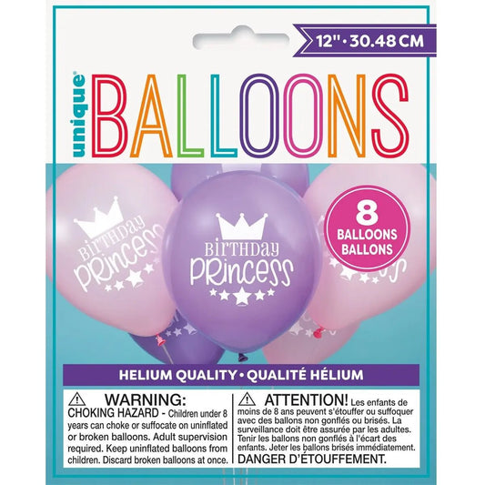 Princess Latex Balloons 30cm (12") 8pk Pink & Purple