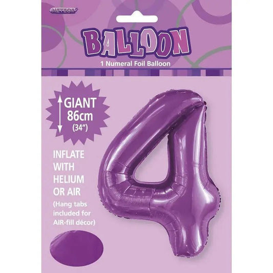 Pretty Purple Number "4" Giant Numeral Foil Balloon 86cm (34")
