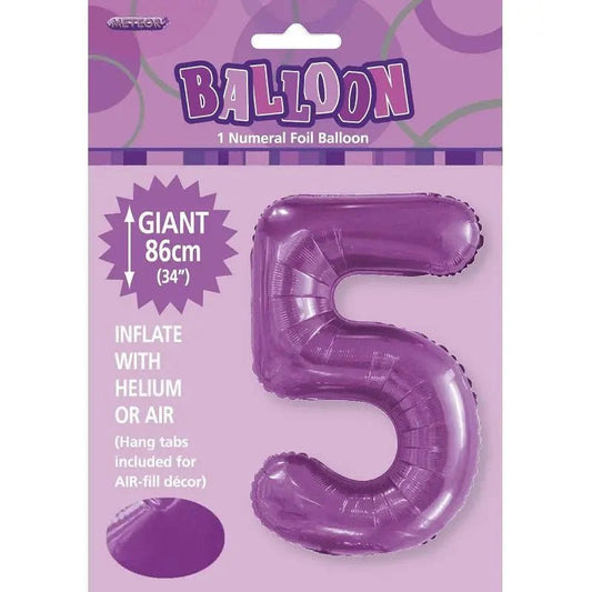 Pretty Purple Number "5" Giant Numeral Foil Balloon 86cm (34")