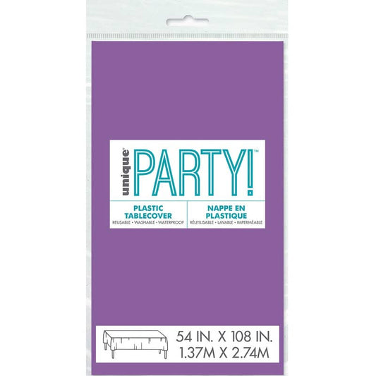 Pretty Purple Rectangle Solid Colour Plastic Table Cover 137cm x 274cm