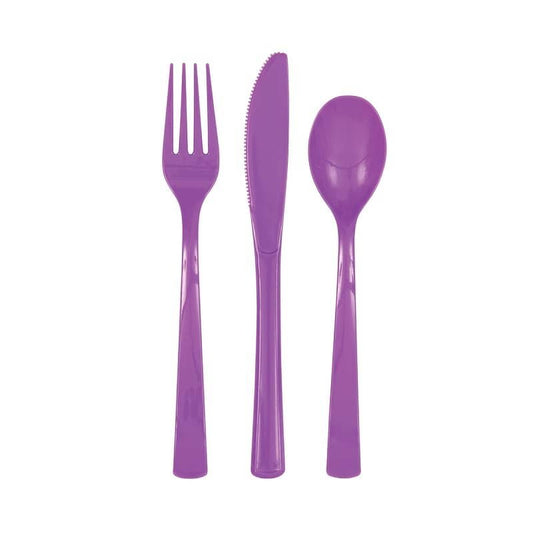 Pretty Purple Solid Colour Plastic Assorted Cutlery 18pk Reusable