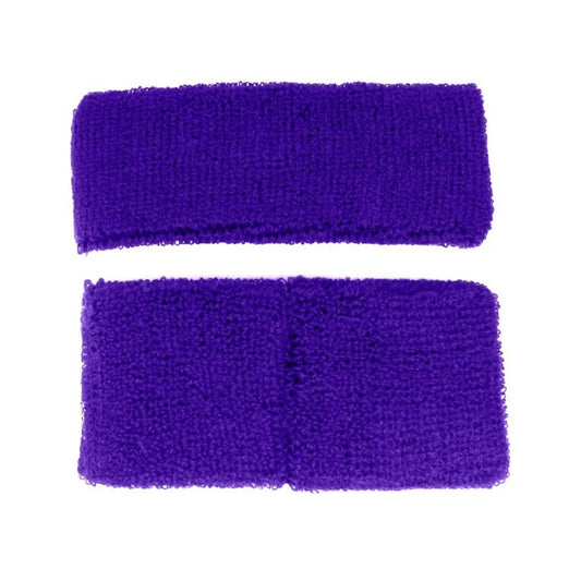 Purple 80's Cotton Wristbands Headband Sweatbands Set