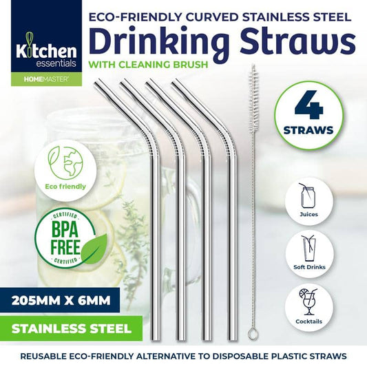 4 Stainless Steel Straws & 1 Cleaning Brush Set