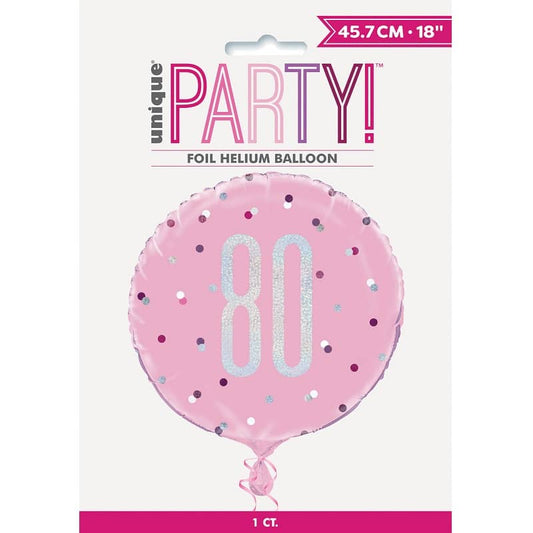 Pink 80th Birthday Foil Prismatic Balloon 45cm (18")