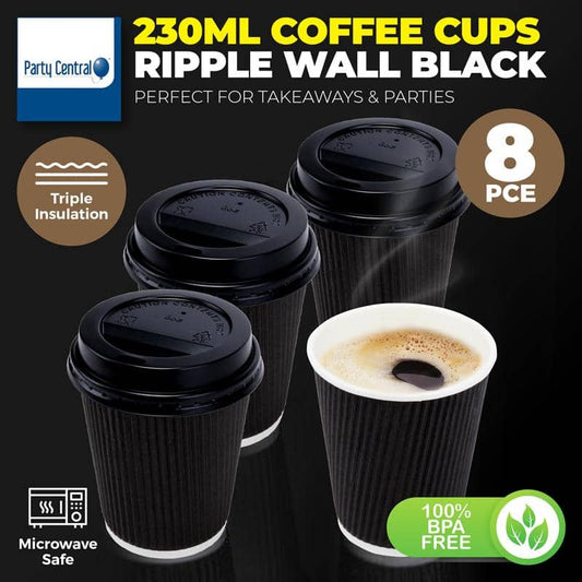 Regular Paper Coffee Cups 230ml (8oz) 8pk With Lids