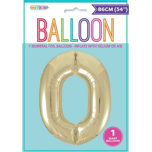 Champagne Gold Number "0" Giant Numeral Foil Balloon 86CM (34")