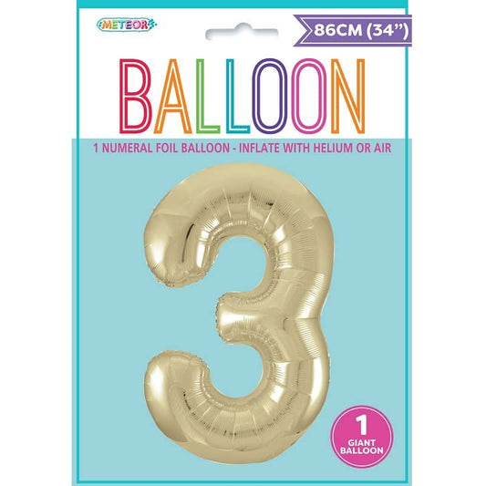 Champagne Gold Number "3" Giant Numeral Foil Balloon 86CM (34")