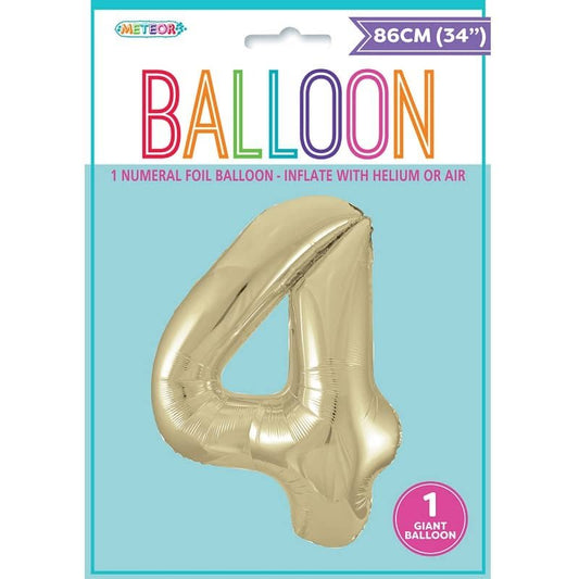 Champagne Gold Number "4" Giant Numeral Foil Balloon 86CM (34")