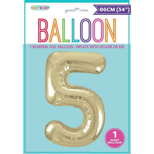 Champagne Gold Number "5" Giant Numeral Foil Balloon 86CM (34")