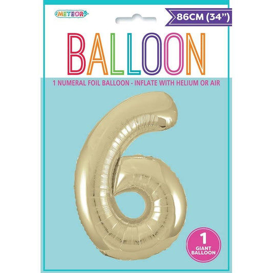 Champagne Gold Number "6" Giant Numeral Foil Balloon 86CM (34")