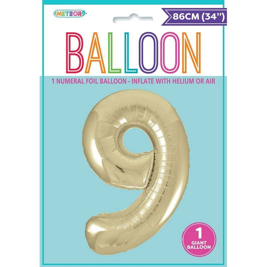 Champagne Gold Number "9" Giant Numeral Foil Balloon 86CM (34")