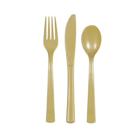 Gold Solid Colour Plastic Assorted Cutlery 18pk Reusable