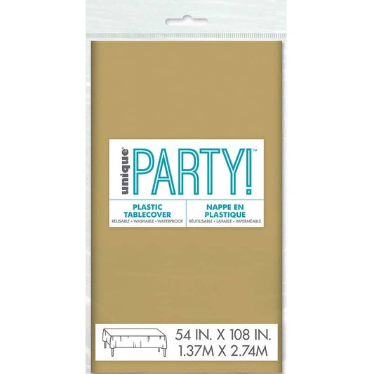 Gold Rectangle Solid Colour Plastic Table Cover 137cm x 274cm