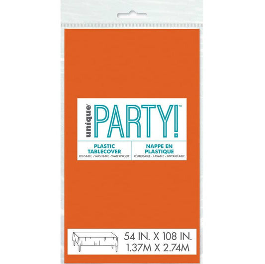 Orange Rectangle Solid Colour Plastic Table Cover 137cm x 274cm