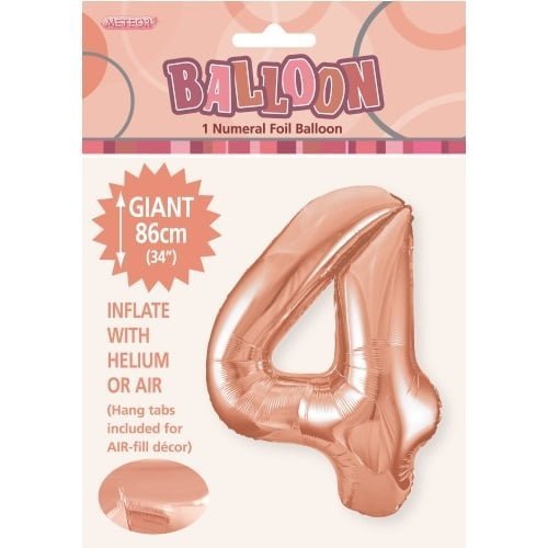 Rose Gold Number 4 Giant Numeral Foil Balloon 86CM (34")