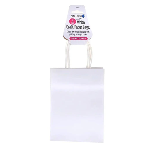 White Kraft Paper Party Bags 3pk 21cm x 15cm x 8cm