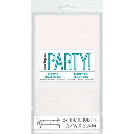 White Rectangle Solid Colour Plastic Table Cover 137cm x 274cm