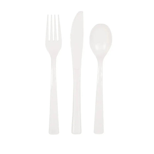 White Solid Colour Plastic Assorted Cutlery 18pk Reusable