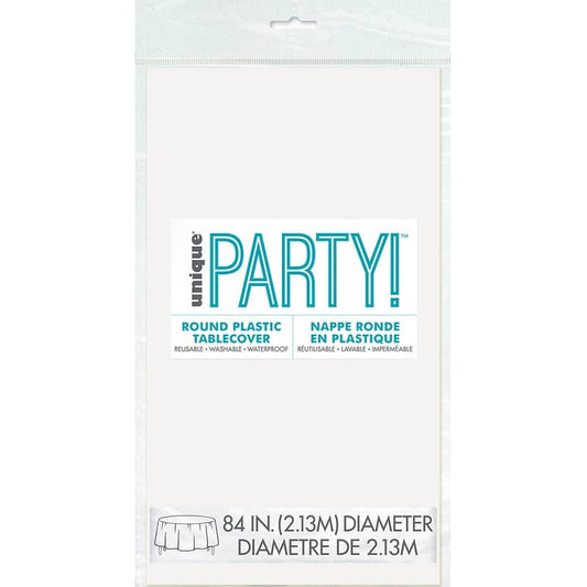 White Solid Colour Round Plastic Table Cover 213cm (84")