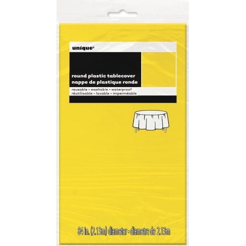 Yellow Solid Colour Round Plastic Table Cover 213cm (84")