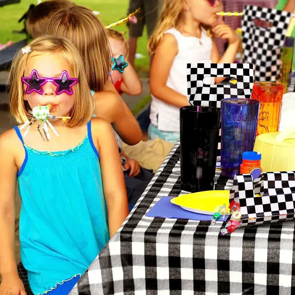 Black & White Checkered Plastic Party Bags 10pk Loot Lolly Treats Favours Boys Girls Kids Children Birthday Party Decorations Party Supplies
