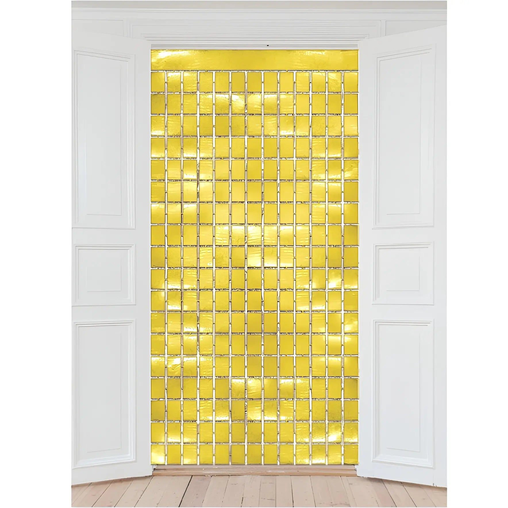 Brighten any celebration with this Metallic Gold Foil Square Curtain measuring 90cm by 2m. Perfect as a backdrop or doorway decoration, it adds a festive touch for kids, boys, girls and adults. Ideal for birthdays and party supplies, it transforms your space effortlessly.